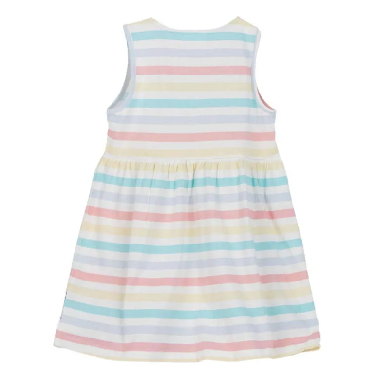 El vestido está confeccionado en 100% algodón, garantizando suavidad y confort durante todo el día, ideal para la piel sensible de los niños. Su diseño sin mangas y corte amplio permite libertad de movimiento, perfecto para jugar y disfrutar.