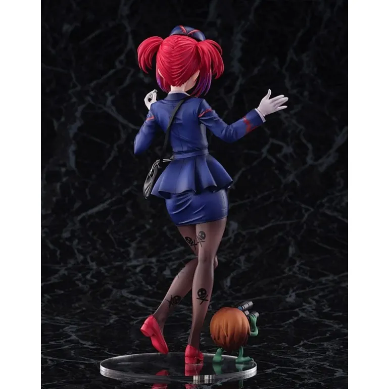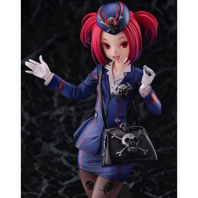 Descubre esta impresionante figura coleccionable de «Yu-Gi-Oh!», fabricada por Amakuni. La estatua, realizada en PVC de alta calidad, mide aproximadamente 25 cm de altura y es un verdadero deleite para los aficionados al anime. Presenta una figura femenina con cabello rojo brillante, recogido en dos coletas, quien luce un uniforme azul marino con detalles rojos y negros. El atuendo se complementa con un sombrero a juego y un bolso adornado con calaveras, añadiendo un toque intrigante a su aspecto. Las medias decoradas con calaveras y sus zapatos de tacón rojos aportan elegancia y estilo.