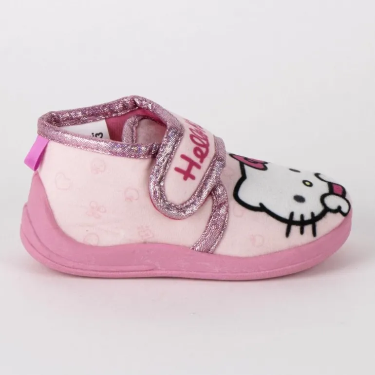 Las zapatillas de casa Hello Kitty son ideales para los más pequeños. Diseñadas en un encantador color rosa con detalles brillantes, estas zapatillas de media bota destacan por su diseño de Hello Kitty en la parte frontal. Su cierre autoadherente asegura un ajuste perfecto, mientras que el interior de algodón garantiza la comodidad y transpirabilidad del pie. La suela de TPR inyectada proporciona antideslizamiento, asegurando que tus hijos caminen de manera segura por toda la casa. Fabricadas en polyester y disponibles en tallas T025-T030, son el complemento perfecto para los pequeños fans de Hello Kitty.