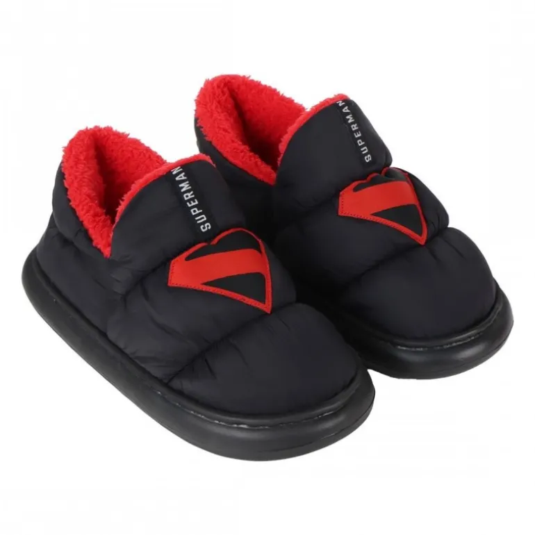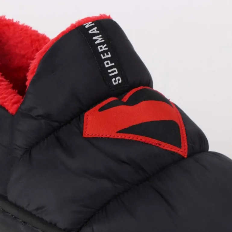 Disfruta del máximo confort en casa con las zapatillas de casa Superman, diseñadas para los verdaderos fans del superhéroe. Estas zapatillas presentan un elegante color negro con un llamativo forro interior rojo que aporta un toque de color y calidez. El icónico logo de Superman adornando la parte superior es el detalle ideal para los seguidores del Hombre de Acero.
