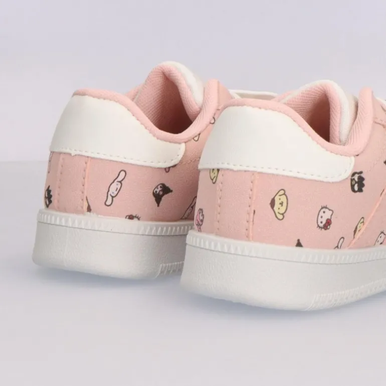 Estas encantadoras zapatillas deportivas de Hello Kitty son perfectas para los pequeños fans de este icónico personaje. Con un diseño en color rosa claro, presentan un estampado completo de Hello Kitty y otros personajes de Sanrio que aportan un toque divertido y alegre. Fabricadas en PU, poliéster y PVC, estas zapatillas combinan estilo y comodidad.