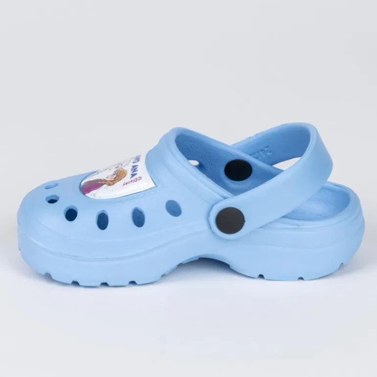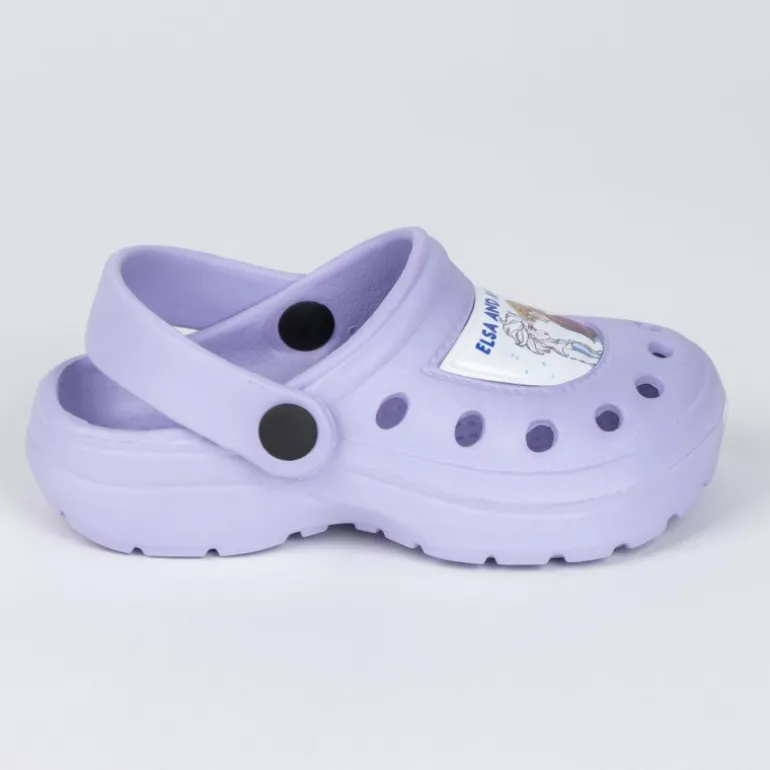 Descubre los irresistibles zuecos EVA de Frozen, diseñados para los más pequeños de la casa. Disponibles en un encantador color azul y un delicado lila, estos zuecos capturan la esencia mágica de Frozen con una imagen de Elsa y Anna en la parte superior, ofreciendo un toque especial que encantará a los niños.