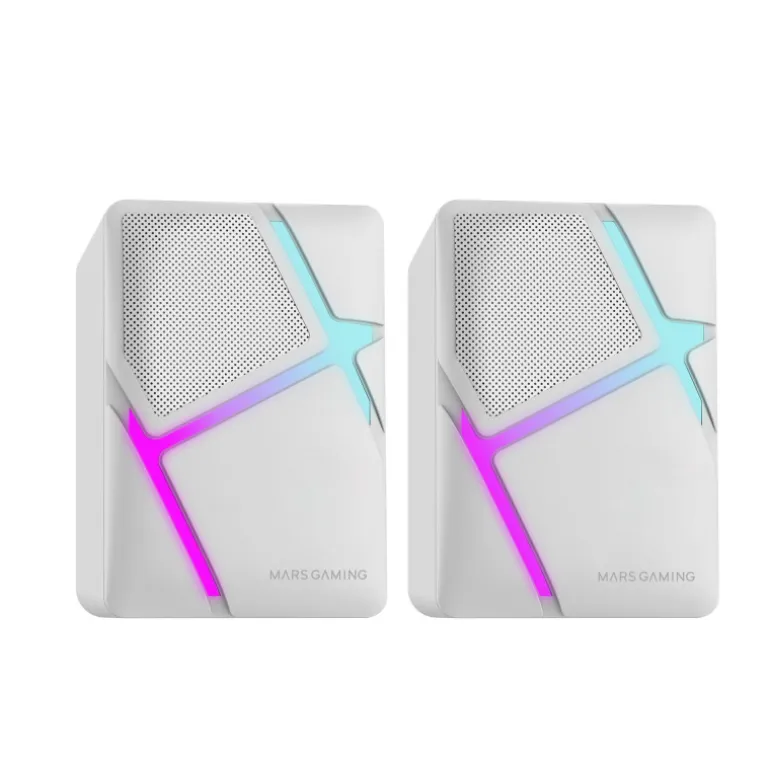Los altavoces compactos Mars Gaming MS-H Blanco son la elección ideal para aquellos que buscan un sistema de sonido de calidad y diseño elegante en un formato compacto. Con su iluminación RGB personalizable, estos altavoces destacan en cualquier espacio, ya sea en tu escritorio de trabajo o en tu zona de juego.