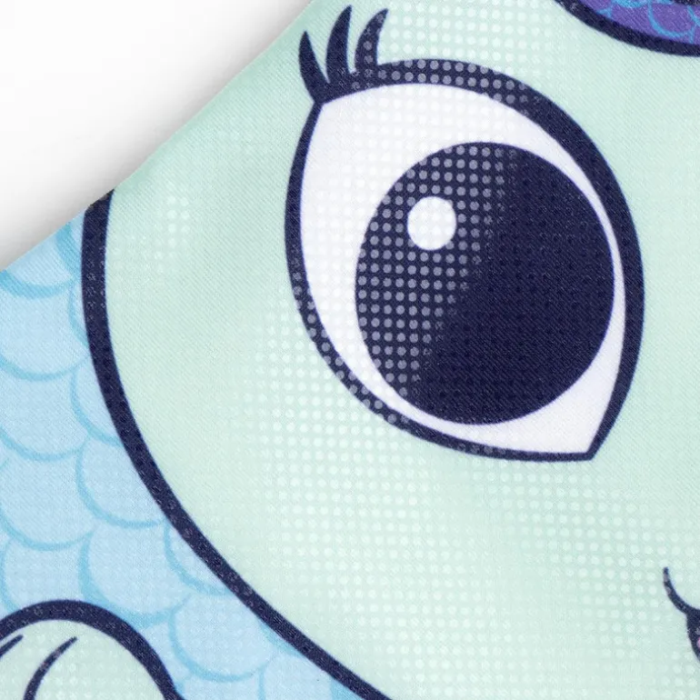 Sumérgete en el mundo de Gabby’s Dollhouse con este encantador bañador para niñas. El diseño presenta un adorable estampado del personaje principal y sus amigos, con colores vivos y detallados que capturan la esencia de la serie. En la parte delantera, destaca el personaje con su distintivo cabello rizado y orejas de gato, mientras que en la parte trasera, otros personajes acompañan el diseño sobre un fondo de escamas en tonos pastel.