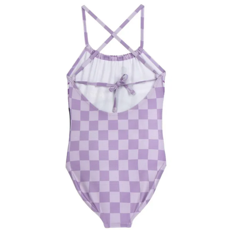 Descubre el encantador bañador Hello Kitty Kuromi, diseñado para las pequeñas que aman la diversión y el estilo. Este traje de baño destaca por su vibrante color lila con un adorable diseño de cuadros que le da un toque moderno y alegre. En el frente, encontrarás una ilustración encantadora del personaje Kuromi, que añade un toque único y divertido.