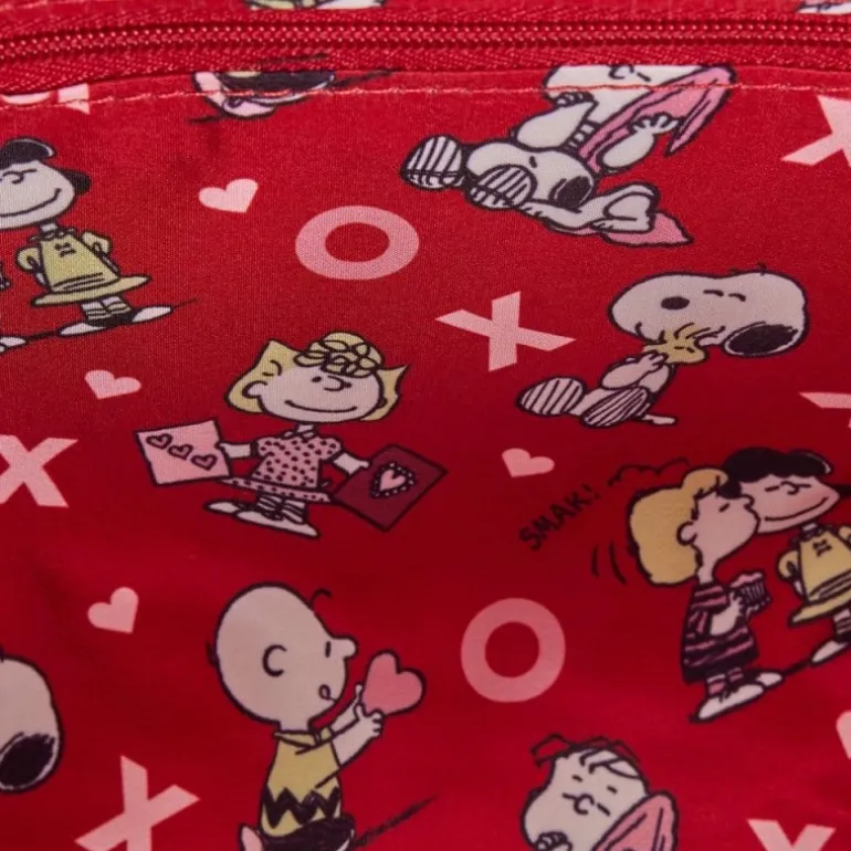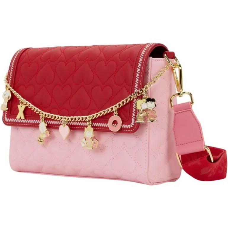 El diseño exterior es un fabuloso juego de colores rojo y rosa con un patrón de corazones, realzado por una cadena dorada que incluye encantadores colgantes de los personajes de Peanuts. En el interior, encontrarás un colorido forro con más personajes y detalles temáticos, añadiendo un toque especial cada vez que la abras.