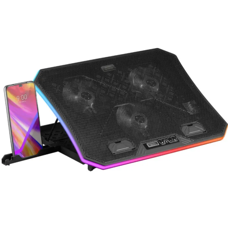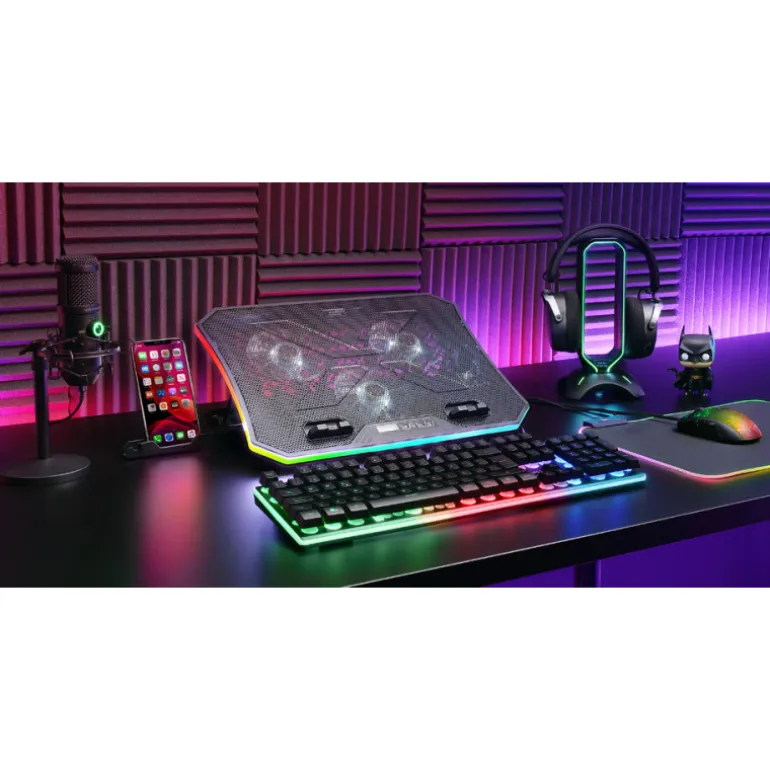 Pero lo que hace destacar a esta base refrigeradora es su iluminación ARGB, que le dará un toque de estilo y personalidad a tu espacio de trabajo o juego. Podrás controlar la iluminación a tu gusto, cambiando entre diferentes colores y efectos para adaptarla a tus preferencias.