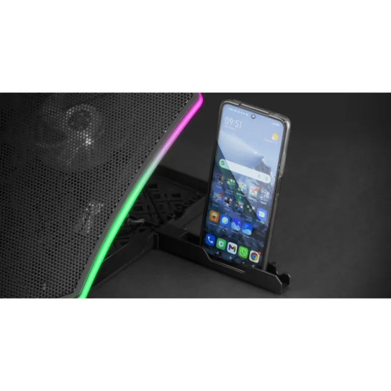 Por si fuera poco, este producto también cuenta con un soporte para móvil integrado, permitiéndote mantener tu dispositivo al alcance de la mano mientras trabajas o juegas en tu portátil. En resumen, la base refrigeradora stand XL de Mars Gaming es una opción completa y versátil para mejorar tu experiencia con tu portátil. ¡No esperes más y hazte con la tuya!