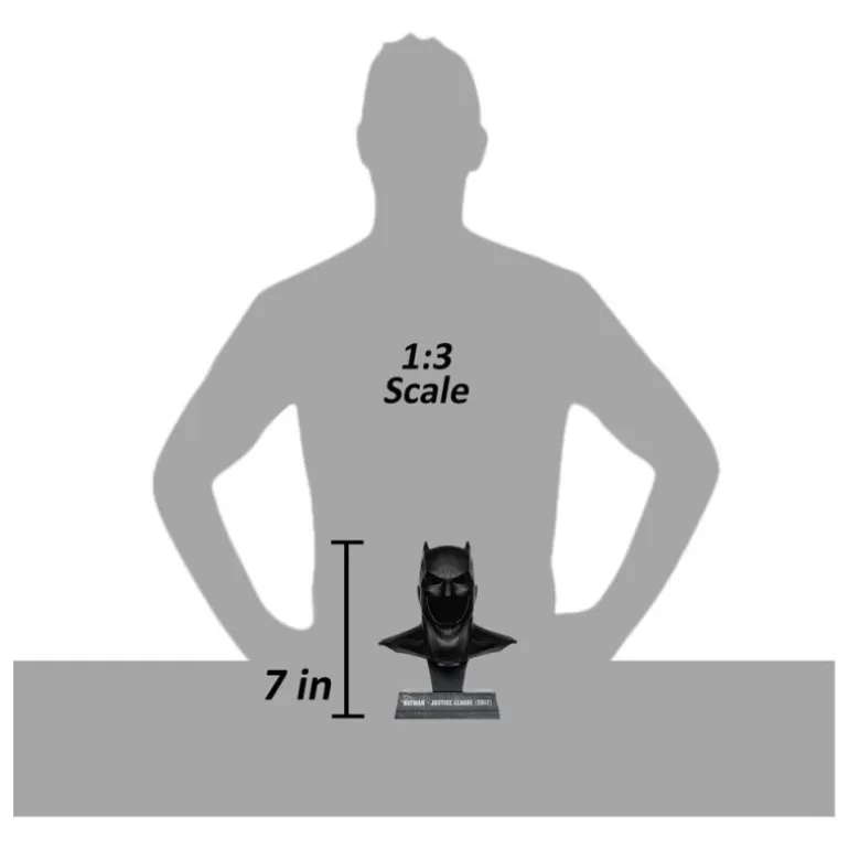 Descubre la réplica a escala 1/3 de la icónica máscara de Batman, ideal para los coleccionistas de artículos de película. Esta pieza representa la máscara tal como se ve en la película Justice League, con un diseño táctico detallado. Con unas medidas de 18,5 x 23,6 x 13,7 cm y fabricada por McFarlane Toys, es una réplica de alta calidad que complementará cualquier colección. Su color negro intenso y su acabado detallado reflejan el estilo sombrío y elegante del Caballero Oscuro.
