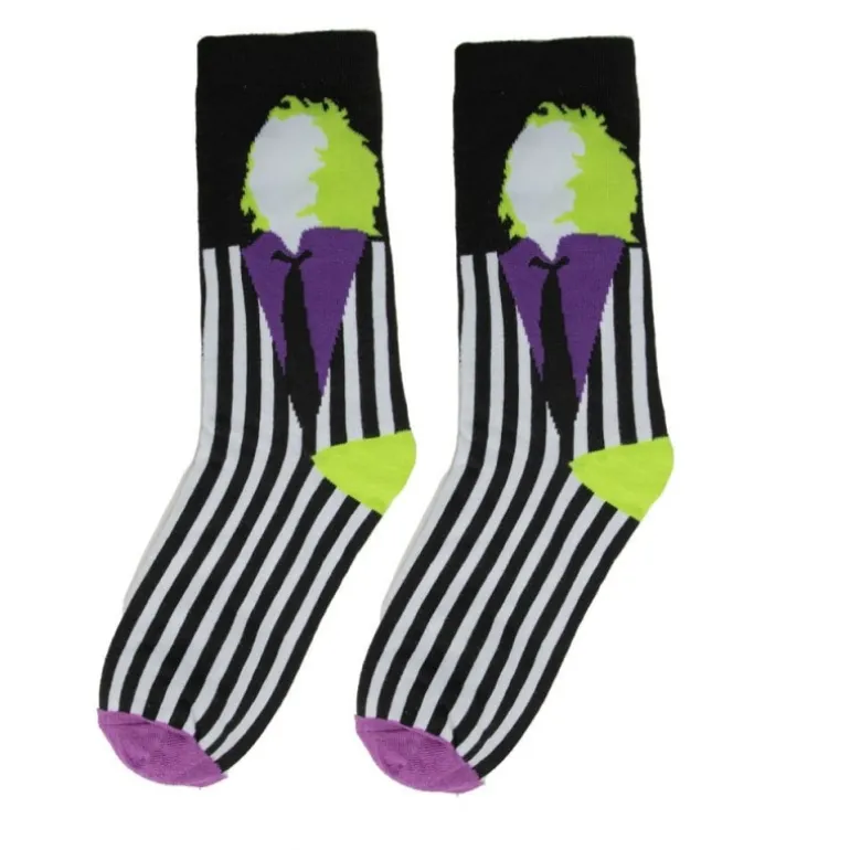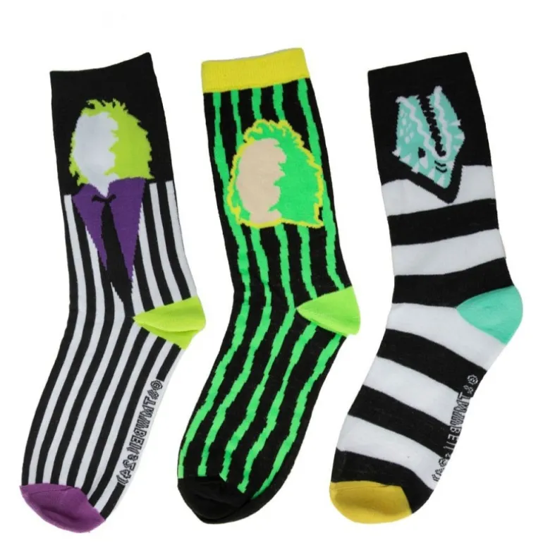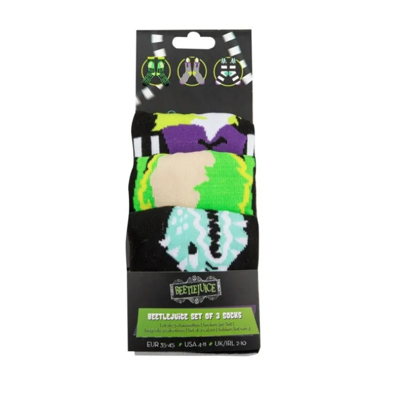 Descubre el original pack de 3 pares de calcetines Beetlejuice, un imprescindible para los auténticos fans del icónico personaje. Cada par presenta un diseño único que captura la esencia del mundo de Beetlejuice, con rayas y colores vibrantes que destacan entre la multitud.