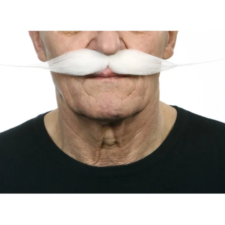 Bigote grande blanco. Ideal accesorio para combinar con nuestros disfraces de Motero, Pintor, Escritor, Personaje de Cine, Personaje Histórico… compra en , comercio seguro y 100% fiable.