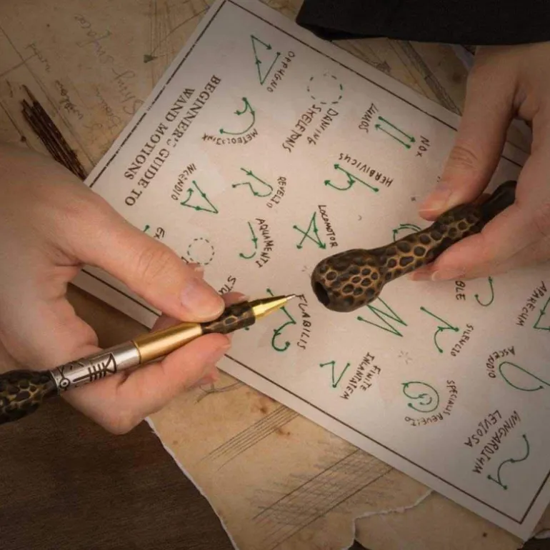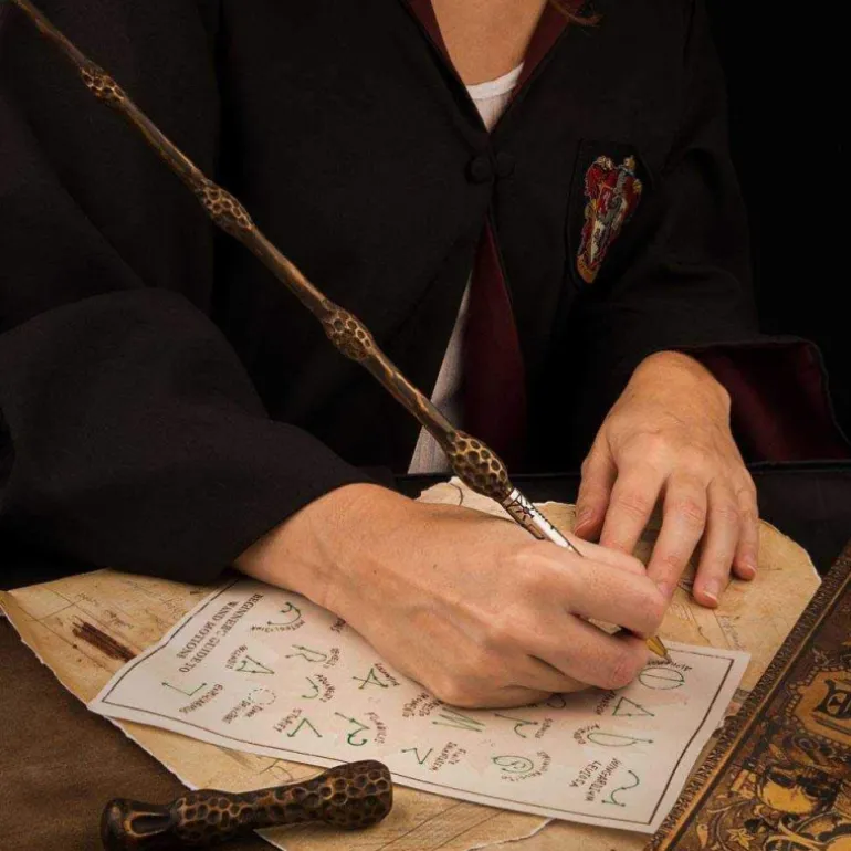 Se trata de un fantástico bolígrafo que reproduce perfectamente la forma de la varita de Dumbledore, con todos sus detallitos de la varita original, y unos acabados y materiales de auténtico lujo. Mide nada menos que 33 cm de largo, y no sabrás si dejarla expuesta en una vitrina o usarla para lanzar hechizos a la par que tomas apuntes en Hogwarts (pero eso sí, la mano la tienes que mover tú).