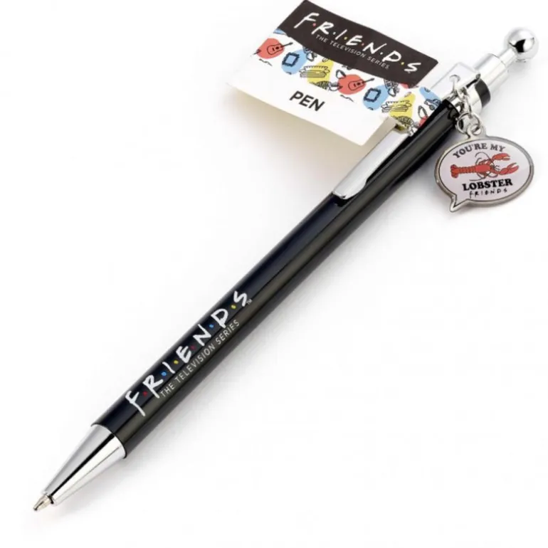 Se trata de un bolígrafo de metal de gran calidad, y con una punta de esas que corren mucho por el papel, y con ese logo de Friends que tan bien conocemos los fans de la serie. Pero además, en su extremo superior tiene una pieza en forma de bocadillo, en la que vemos un dibujo de una langosta y la frase «You Are my Lobster», que nos recuerda la particular teoría de Phoebe sobre las langostas y el amor.