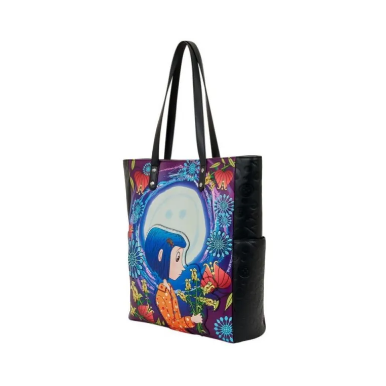Con dimensiones de 30 x 13 x 30 cm, es perfecta para llevar todos tus objetos esenciales. Sus resistentes asas negras la hacen cómoda para llevar al hombro. La temática de Coraline y los cuidados detalles del diseño floral la convierten en una pieza única y coleccionable.