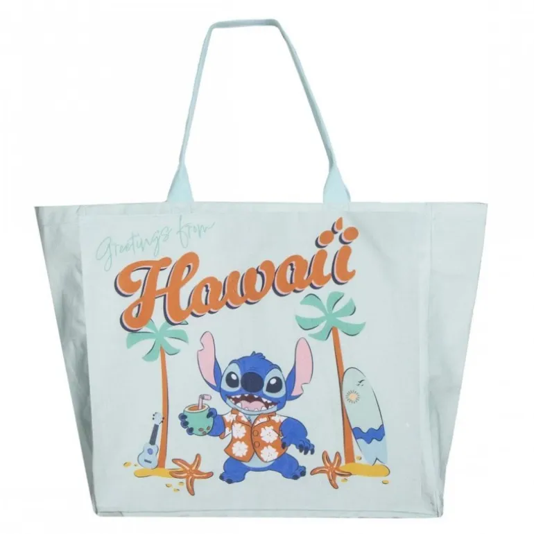 Descubre la bolsa shopping XL de Stitch, ideal para los amantes de Disney y perfectos para un paseo por la playa o un día de compras. Esta bolsa destaca por su diseño tropical con Stitch, el querido personaje, disfrutando de un refresco en un entorno hawaiano. Fabricada en un tejido resistente de 70% poliéster y 30% algodón, combina durabilidad y estilo.