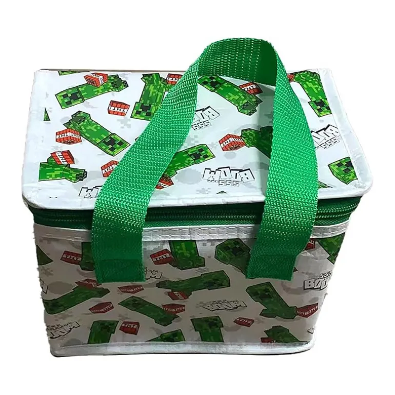 Una preciosa bolsa térmica o fiambrera con un diseño muy divertido, inspirado en el famosísimo videojuego Minecraft.