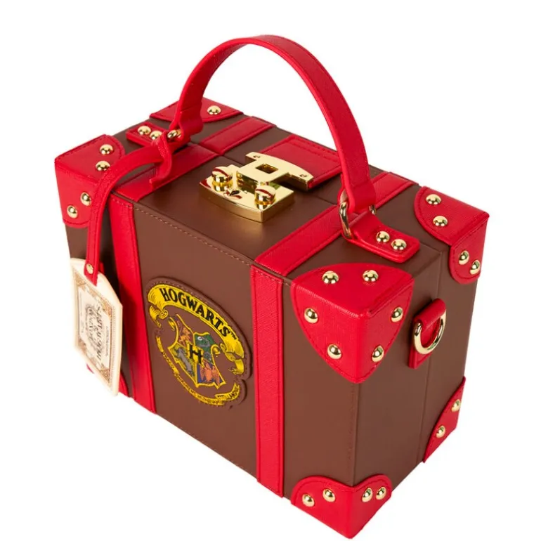 Este exclusivo bolso bandolera, inspirado en la icónica maleta del Expreso de Hogwarts, es un tesoro para cualquier amante del universo de Harry Potter. Con licencia oficial, este artículo combina diseño y funcionalidad. Fabricado en una combinación de colores marrón y rojo, el bolso simula una maleta vintage con detalles dorados que aportan un toque elegante.