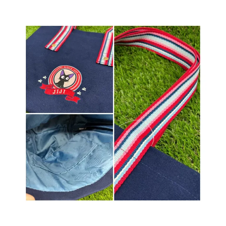 Una bolsa tote o bolso muy útil y compacto, con un diseño que es una monada, basado en la que seguramente es una de las más icónicas de las películas del maestro Hayao Miyazaki, Nicky aprendiz de bruja.