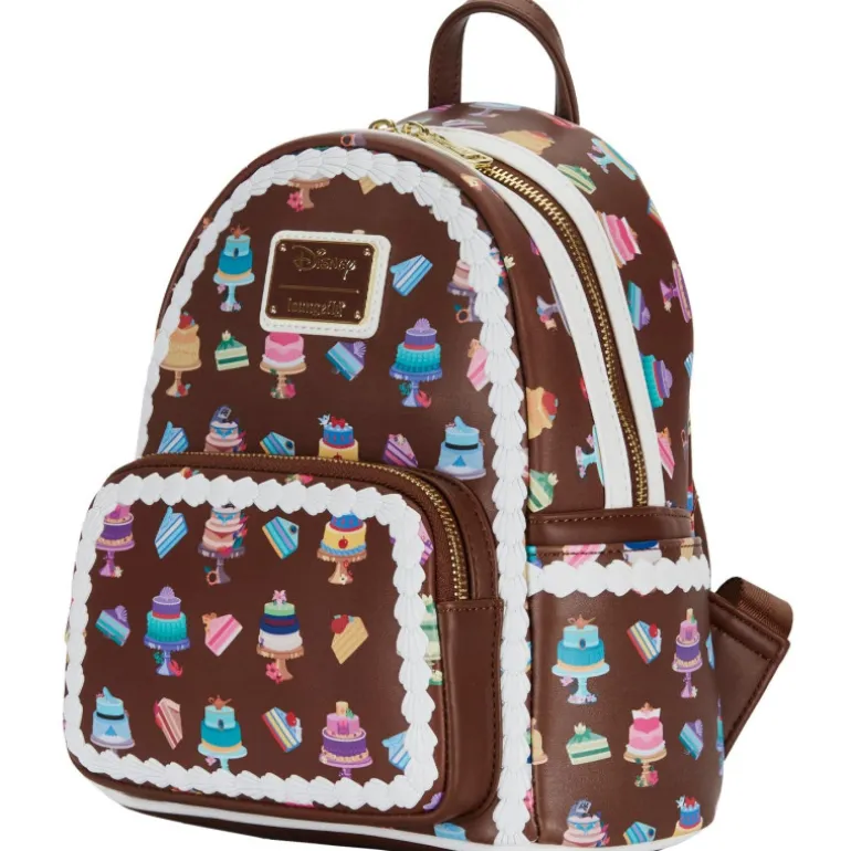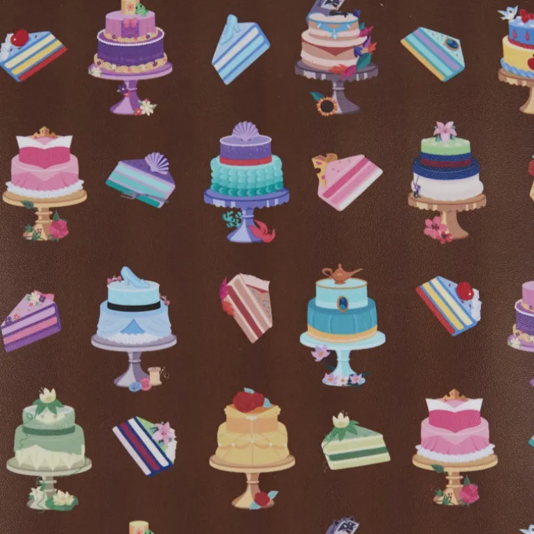 Pero sin duda lo más sorprendente es su diseño, en marrón chocolate y con un montón de pastelitos de aspecto muy cuqui y delicioso. Pero además, sí te fijas bien, coronando estos pasteles hay algún objeto icónico de las pelis Disney: la lámpara mágica de Aladdín, el zapato de Cenicienta, la manzana de Blancanieves… No dejes de ver todas las fotos para que veas cada uno de los cuidados detalles, incluidos los del estampado de su interior.