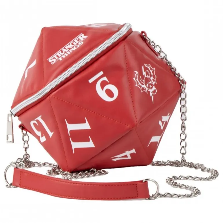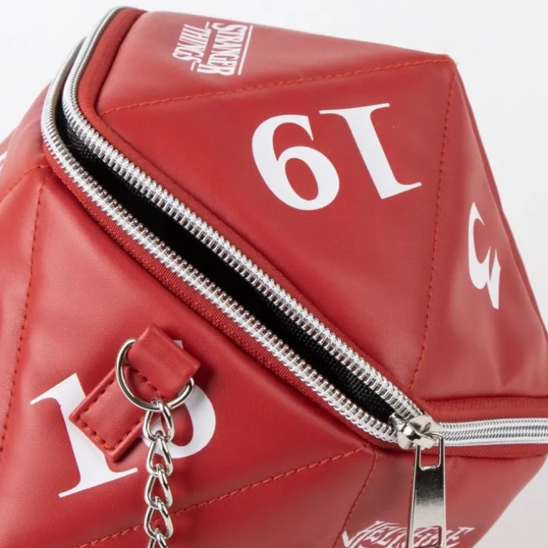 Sumérgete en el mundo de Stranger Things con este exclusivo bolso de polipiel en forma de dado D20. Con un vibrante color rojo y detalles en blanco, este bolso es un homenaje perfecto para los fans de la serie y los juegos de rol. Fabricado en material 100% PU, su diseño poligonal realza el número 20 en sus paneles, capturando la esencia del mítico dado de veinte caras.
