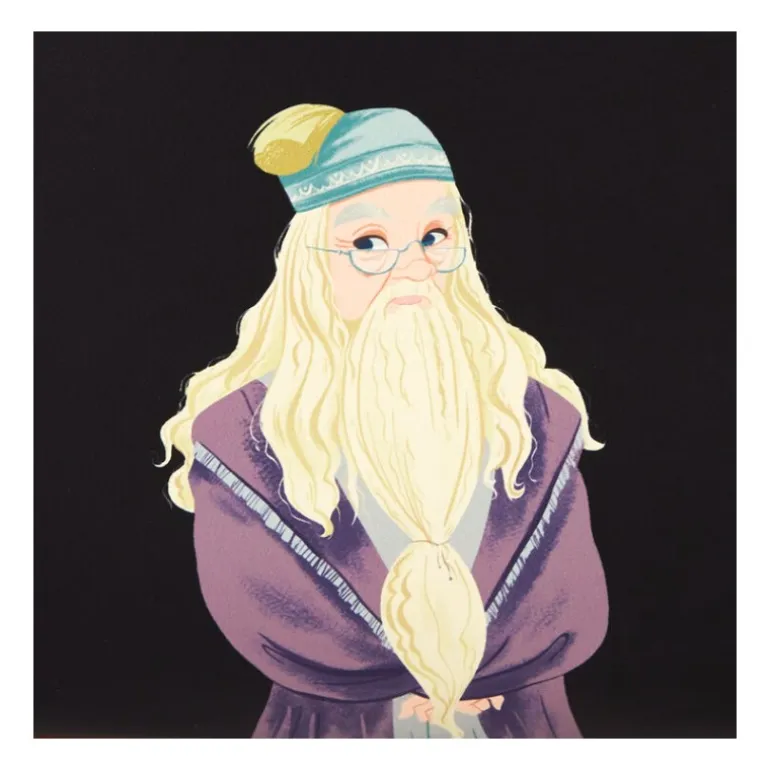 En los laterales, se pueden ver ilustraciones de otros personajes emblemáticos, como Snape y Hagrid, completando un diseño integral que cautiva a los amantes de la serie. La parte trasera del bolso presenta una ilustración de Dumbledore destacado, aportando un extra de originalidad.