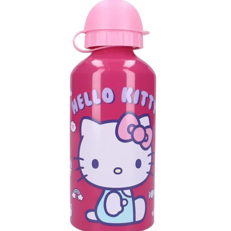 La botella Hello Kitty de aluminio con capacidad para 500 ml es el accesorio perfecto para los fans de la icónica gatita. Con un diseño encantador, muestra a Hello Kitty en un fondo rosa vibrante con detalles de arcoíris y helado. Fabricada en aluminio, es ligera y duradera, ideal para el uso diario.