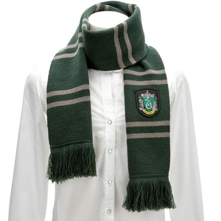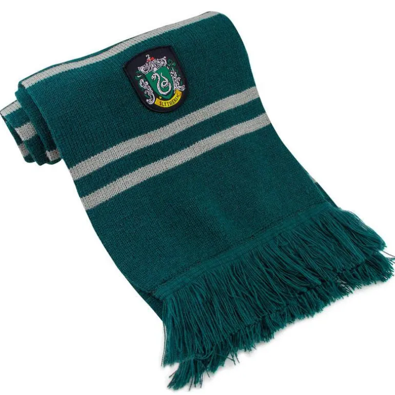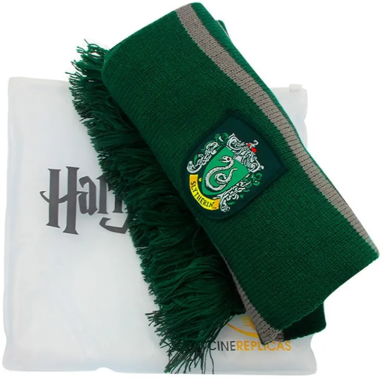 ¿No es una auténtica preciosidad? Es la bufanda oficial de la casa Slytherin fabricada bajo licencia por la firma Cinereplicas, con los colores verde y gris típicos de esta casa del famoso colegio Hogwarts y con el escudo de armas tan característico, donde la serpiente es la protagonista. Mide 190 cm de largo y unos 25 de ancho y es una maravilla tanto en la calidad de sus materiales como en los acabados, bordados y el magnífico packaging.