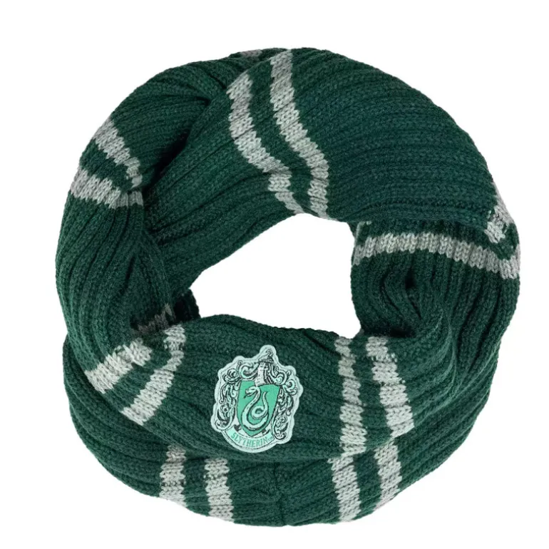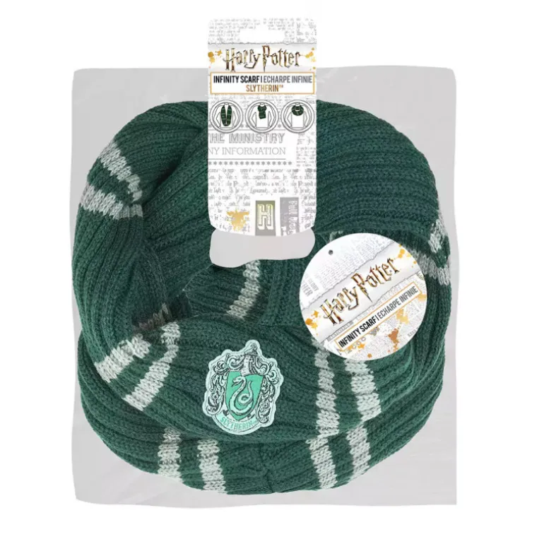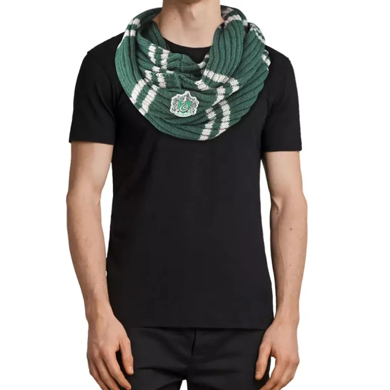 Fabricada con materiales de alta calidad, la Bufanda Infinity Slytherin Harry Potter es suave, cálida y cómoda de usar, perfecta para los días fríos de invierno o para lucir el espíritu de la casa de Slytherin en cualquier ocasión.