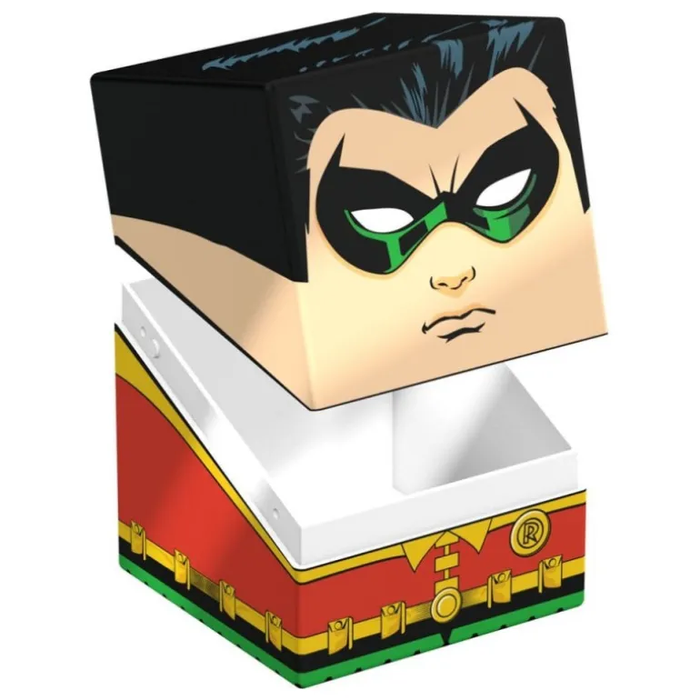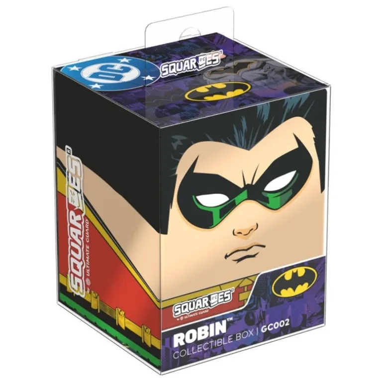 La Caja Coleccionable Squaroe Robin de la edición Batman: Gotham City es un elemento imprescindible para los aficionados al universo DC. Esta caja presenta un diseño cuadrado con la icónica imagen de Robin en el frontal, destacando sus características gafas verdes y su uniforme clásico en tonos rojos, amarillos y negros.