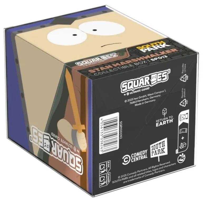 Descubre la caja coleccionable Squaroe South Park™: The Stick of Truth SP013, representando al icónico Stan Marshwalker. Con unas dimensiones de 8,1 x 8,2 x 10,5 cm y un peso de 178 gramos, esta caja es la elección perfecta para los amantes de South Park™ y jugadores de cartas coleccionables. Su diseño utiliza un 78% de recursos renovables, reflejando un compromiso con la sostenibilidad.