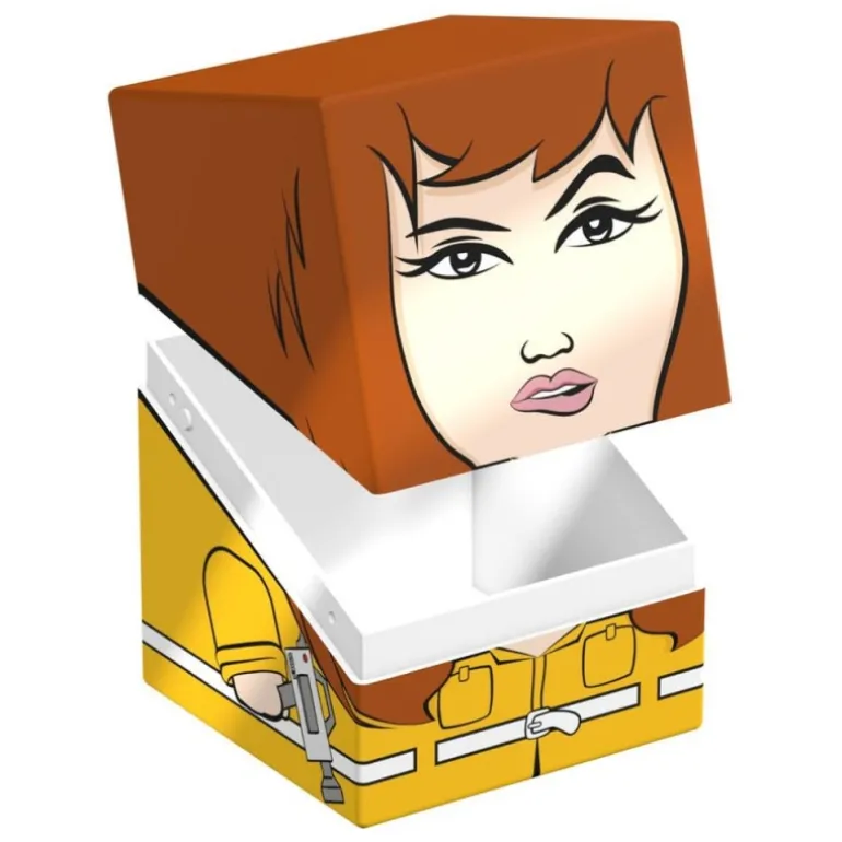 La Caja Coleccionable Squaroes April TMNT™ 009 es un homenaje único al emblemático personaje de la serie Tortugas Ninja. Con un diseño cuadrado estilizado, esta caja presenta un retrato llamativo de April O’Neil en tonos naranjas y amarillos, perfecto para los amantes de la serie. Con medidas de 7,8 x 7,9 x 10,5 cm y un peso de 177 gramos, es ideal tanto para coleccionistas como para jugadores de cartas.