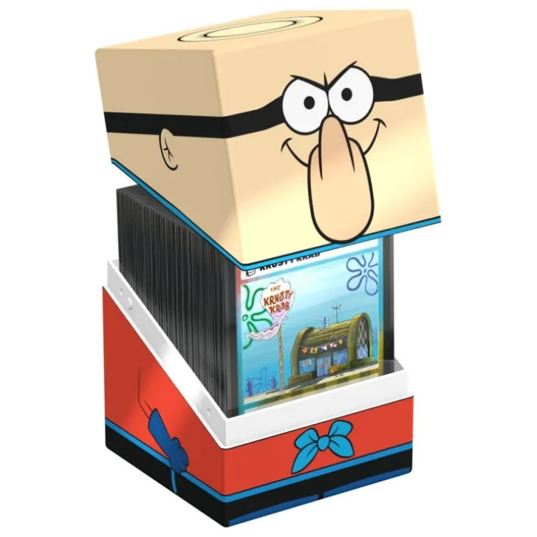 Gracias a su capacidad, puede albergar hasta 100 cartas con funda doble o 120 con funda única. Combinando sostenibilidad y creatividad, esta caja se adapta perfectamente en el Collectors Case disponible por separado. Una elección perfecta para cualquier coleccionista o aficionado a SpongeBob.