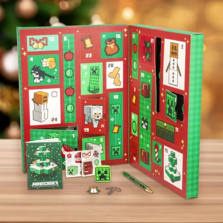 Fabricado por Paladone Products, incluye 24 sorpresas de papelería únicas y originales, todas con licencia oficial de Minecraft. Cada día, los fans podrán descubrir un nuevo regalo, desde bolígrafos hasta cuadernos, todos inspirados en el universo Minecraft. Ideal para decorar tu escritorio con un toque divertido y mantener el espíritu navideño cada día de diciembre.