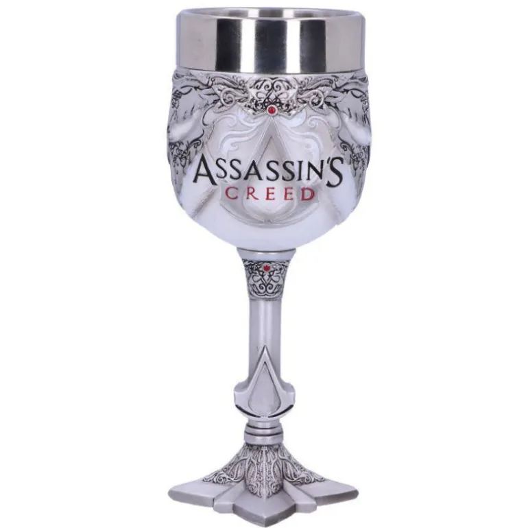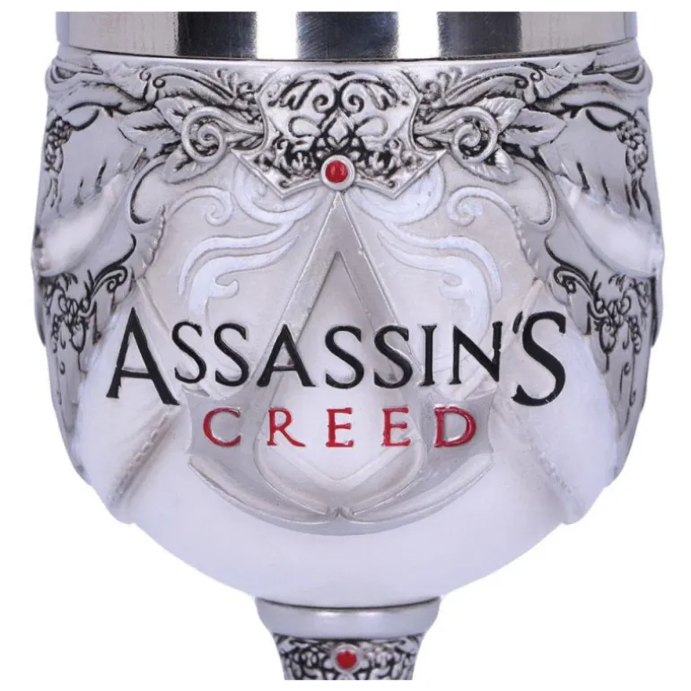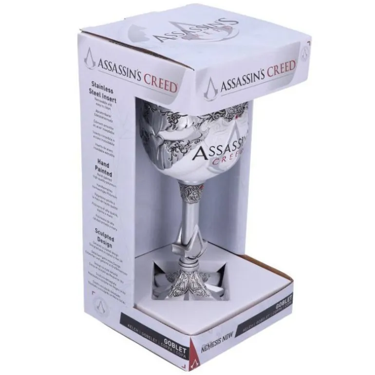 Espectacular cáliz pintado a mano de poliresina con inserción de acero inoxidable inspirada en una de las sagas de videojuegos de aventuras más épicas que conocemos, Assassin’s Creed. Un cáliz con licencia oficial, que tiene nada menos que 18 cm de altura, realizado por la prestigiosa firma Nemesis Now.