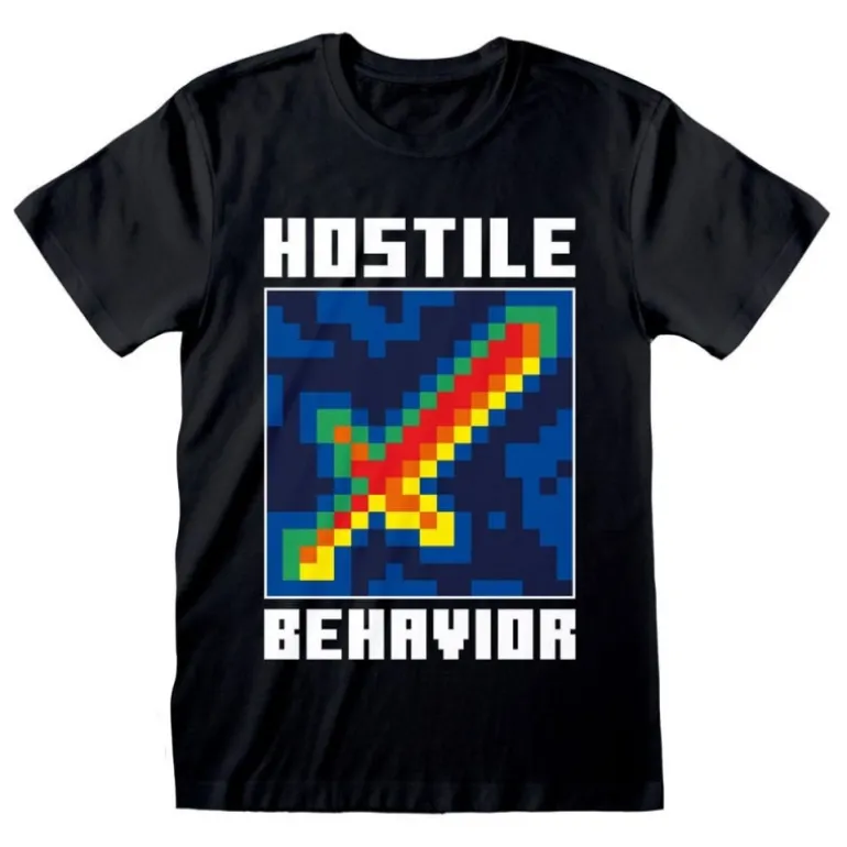 Esta camiseta de Minecraft es un imprescindible para los verdaderos fans del videojuego. Fabricada con 100% algodón, garantiza una comodidad y durabilidad excepcionales. Cuenta con un diseño pixelado icónico de una espada colorida que destaca sobre un fondo oscuro, acompañado del texto ‘Hostile Behavior’. Producto con licencia oficial, viene empaquetado en una práctica bolsa de polipropileno.