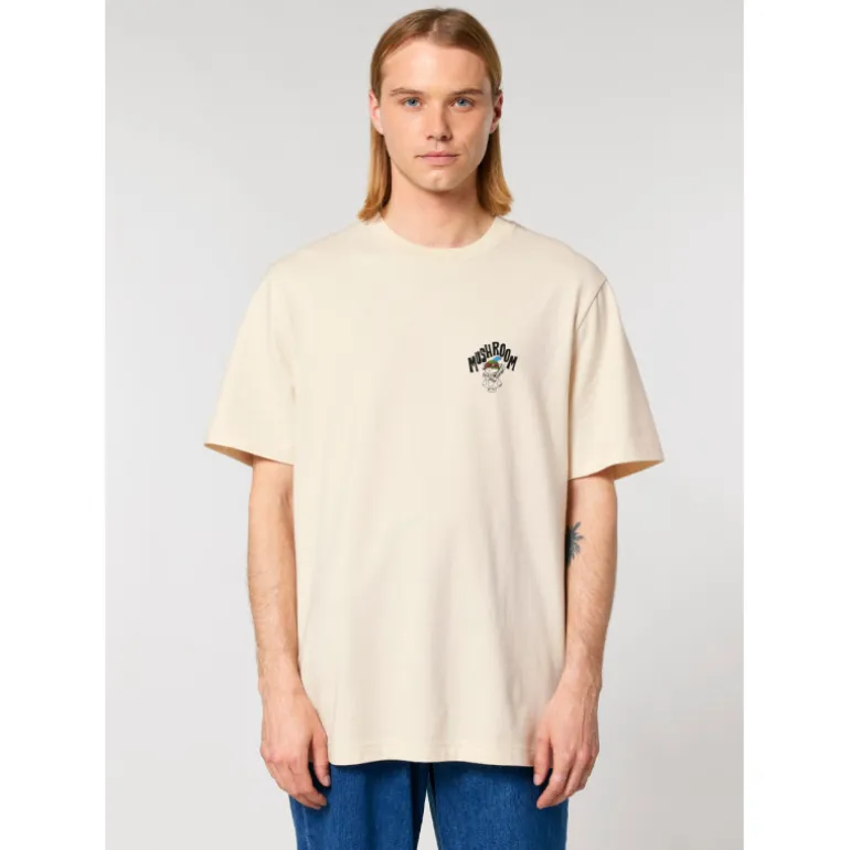 La camiseta presenta un fondo color arena que resalta el dibujo de Teemo, el icónico campeón de League of Legends.