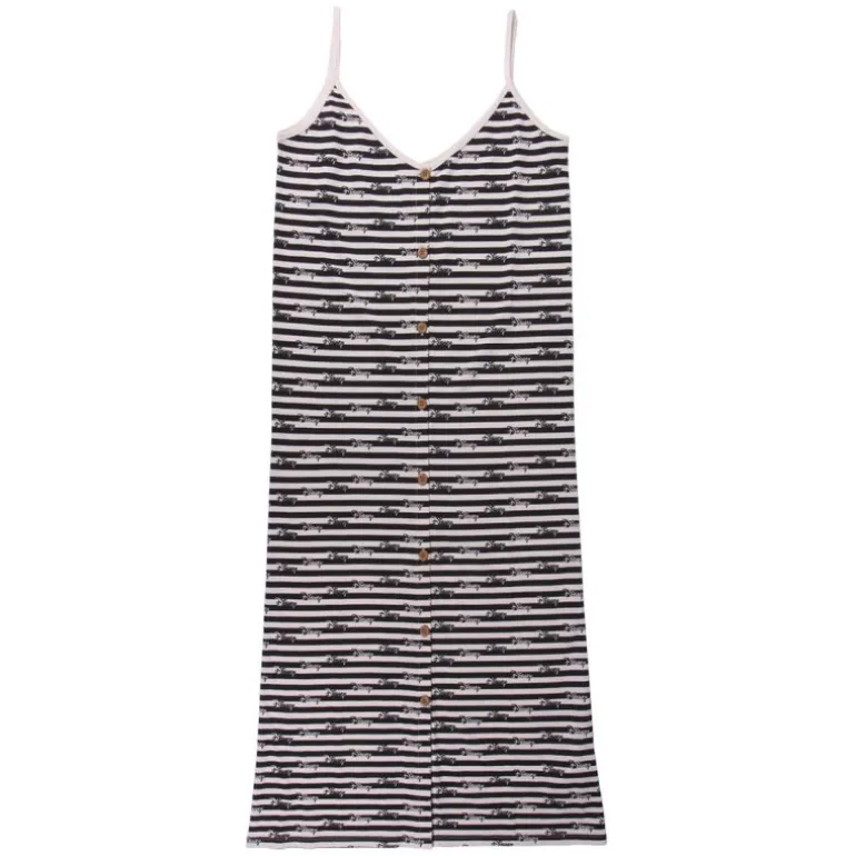 Pero lo mejor es su genial diseño, con un unas líneas en blanco y negro que recorren todo el vestido y entre ellas las icónicas letras de Disney que hacen un contraste genial. Una camiseta entallada especialmente para chica en un elegante diseño perfecto para los días calurosos de verano, es un producto oficial licenciado por Disney y confeccionado en materiales de la mejor calidad (100% algodón).