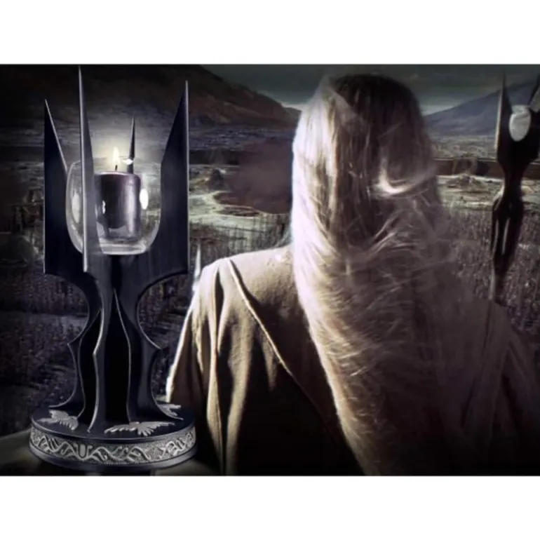 El Candelabro Bastón de Saruman es una pieza única de la colección El Señor de los Anillos, diseñada para capturar la esencia del emblemático personaje. Con unas medidas de 34cm X 23cm X 19cm, este candelabro presenta un elegante diseño en tonos oscuros que emula el bastón de Saruman. El candelabro combina detalles finamente tallados y un acabado que refleja la majestuosidad de la Tierra Media. Fabricado por The Noble Collection, este artículo con licencia oficial es perfecto para coleccionistas y admiradores de la saga. Ideal para decorar cualquier espacio con un toque de magia y aventura. Su base está adornada con motivos que evocan el mundo fantástico de Tolkien, haciendo de esta pieza un regalo excepcional para cualquier amante del género.
