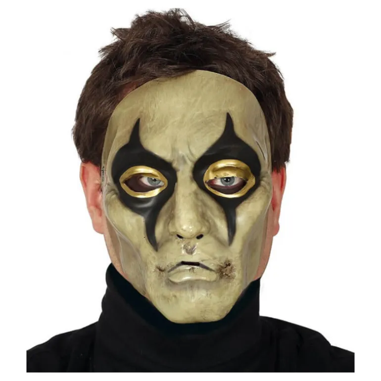 Careta de Arlequín o Bufón con Ojos Dorados. Perfecto en fiestas del terror como Halloween. ¡Compra en , un ecommerce que cumple con todas las normativas de la U.E.!