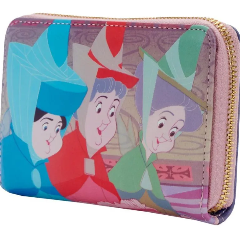 Pero sin duda lo más sorprendente es su diseño, que reproduce algunos de los fotogramas más icónicos de La Bella Durmiente, con Aurora y Maléfica por un lado y las Hadas Madrinas por el otro. Tiene unos colores muy vivos y llamativos y en la parte interior de la cartera, a parte de mucho espacio para guardar nuestras tarjetas y billetes tiene un estampado en el que también aparece Aurora.