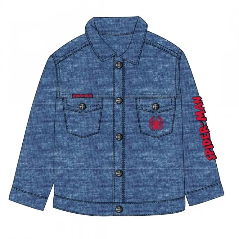 Descubre la chaqueta denim de Spiderman, diseñada especialmente para los más pequeños de entre 2 y 8 años. Confeccionada en algodón de alta calidad, esta chaqueta ofrece comodidad y estilo a los jóvenes fans de Spiderman. El diseño incluye un llamativo logo de Spiderman en el pecho y el nombre del superhéroe en la manga, ambos en color rojo vibrante, que destacan sobre el fondo azul del denim.
