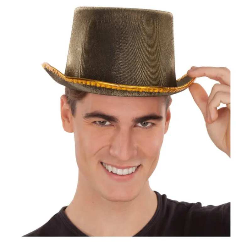 Chistera con borde Dorado de 58 cm. Perfecto para fiestas de terror como puede ser halloween. ¡Compra en un comercio online seguro, Compra en !