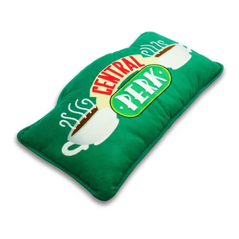 Se trata de un cojín con licencia oficial y un diseño realmente original, con el logo de Central Perk, la icónica cafetería que solían frecuentar este mítico grupo de amigos neoyorquinos, y sus nombres, que aparecen en la parte trasera del cojín. Tiene un tamaño muy adecuado para ponértelo detrás del cuello o la cabeza y descansar, ya que mide 33 x 33 x 8 cm, su textura es muy suave y además es un objeto perfecto para darle un toque diferente a tu sofá, a la cama…
