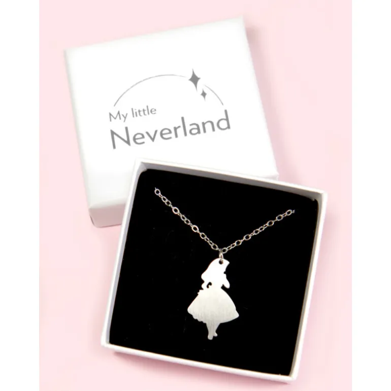 Se trata de un elegante colgante de acero, que destaca por una pieza principal con la forma de la silueta de Alicia, con ese mítico vestido azul que a todos nos viene a la mente nada más pensamos en ella. Está fabricado en acero y cuenta con unos acabados de gran calidad.