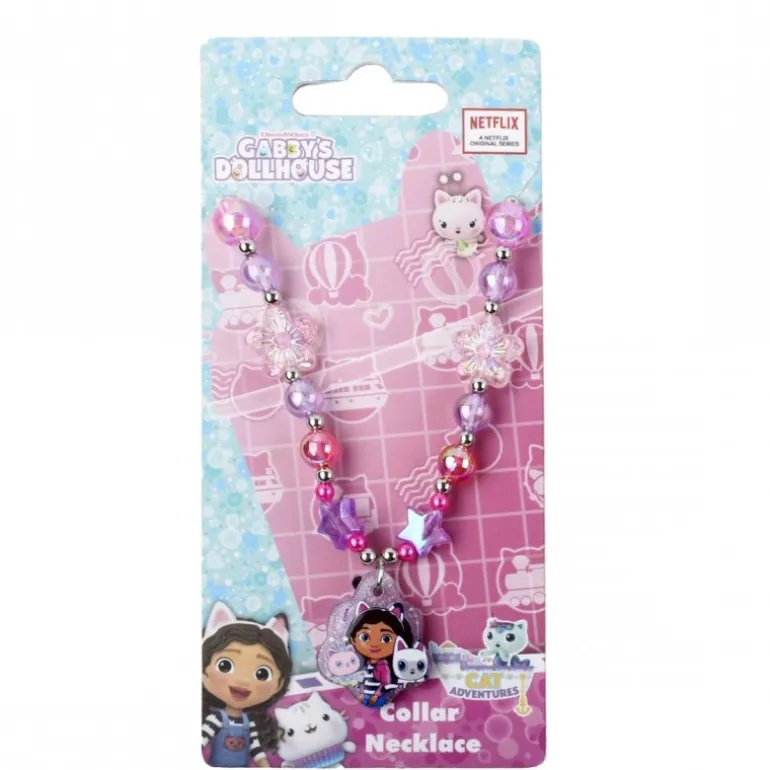 Descubre el collar de bisutería inspirado en la mágica serie de Gabby’s Dollhouse. Este encantador accesorio está compuesto por cuentas multicolores en tonos rosas y lilas, combinadas con pequeños adornos en forma de estrellas y flores que capturan la esencia de la serie. Al centro, un peculiar colgante con la ilustración de Gabby y sus inseparables amigos felinos, que hará las delicias de los más pequeños. Fabricado con materiales de calidad, es ligero y cómodo de llevar, perfecto para añadir un toque de fantasía a cualquier atuendo infantil. Ideal como regalo para los seguidores de Gabby’s Dollhouse, este collar no solo es un accesorio, sino una puerta a la imaginación y el juego.