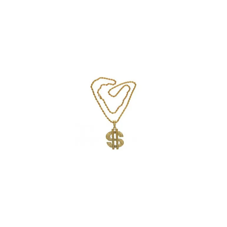 Collar Dorado con colgante de símbolo del Dólar. Ideal para nuestros disfraces de Gánster, Mafioso o Árabe. ¡Compra en y apoya el comercio español!