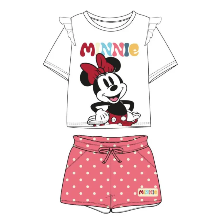 Este adorable conjunto de 2 piezas inspirado en Minnie es el complemento perfecto para las más pequeñas de la casa. Incluye una camiseta y shorts, ambos fabricados en suave French Terry de 100% algodón, garantizando comodidad y frescura.