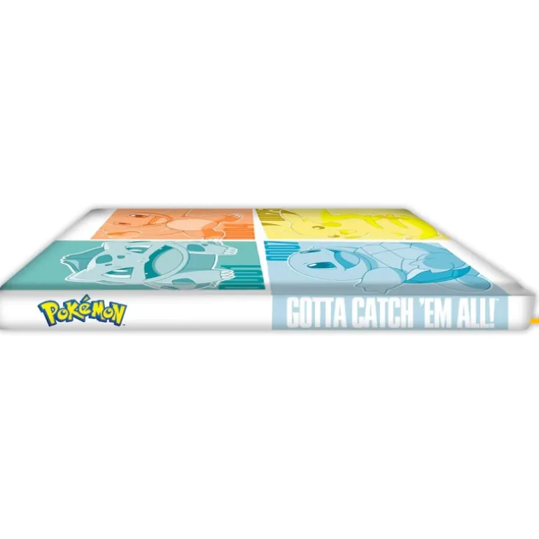 Descubre el cuaderno A5 de Pokémon que todo aficionado debe poseer. Este cuaderno, fabricado por ABYstyle bajo la licencia oficial de Pokémon, presenta a los icónicos Pokémon iniciales de la región de Kanto: Bulbasaur, Charmander, Squirtle y Pikachu.