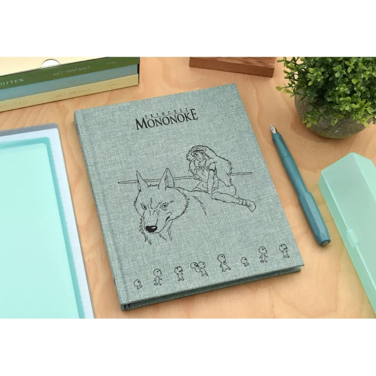 Explora la magia del mundo de Studio Ghibli con este libro de bocetos con licencia oficial de La Princesa Mononoke. La portada presenta un diseño en tonos verdes, mostrando a San junto a Moro, rodeados de pequeños y encantadores espíritus del bosque en la parte inferior. Este cuaderno para dibujar, es una pieza de colección imprescindible para los amantes del arte y del universo Ghibli.