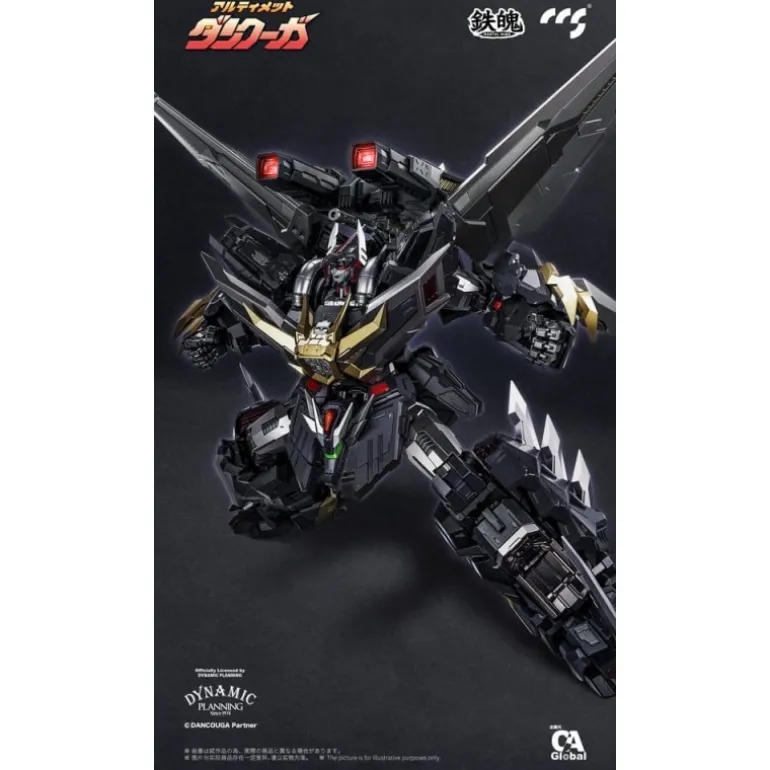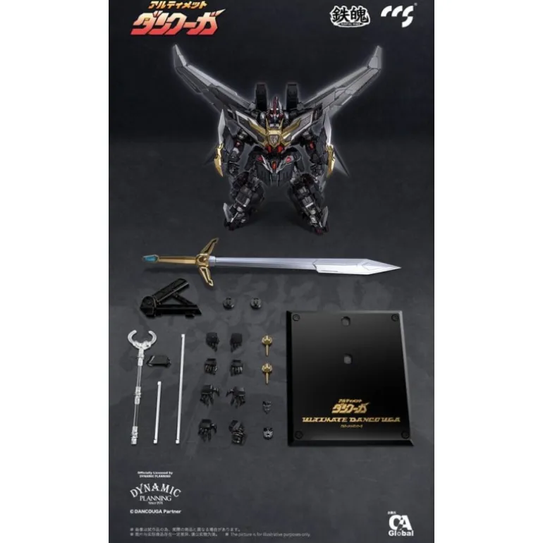 El diseño del Ultimate Dancouga es espectacular, presentando un acabado en tonos oscuros, con detalles dorados y plateados que acentúan el carácter majestuoso y robusto del mecha. Sus articulaciones permiten una amplia variedad de poses, ideal para coleccionistas que desean recrear escenas épicas del anime.